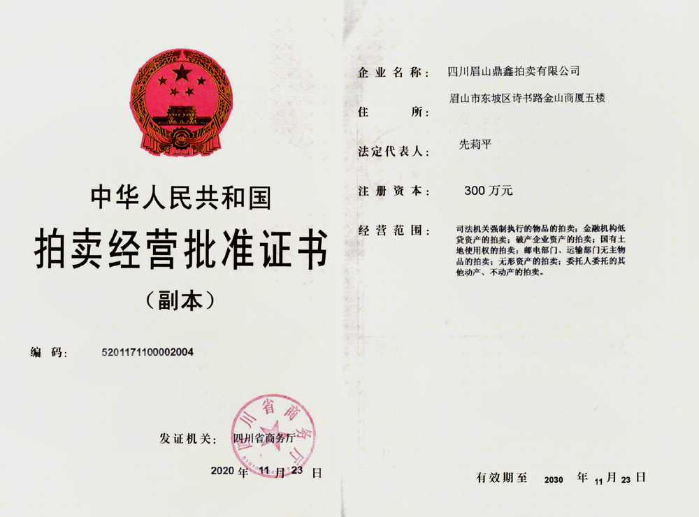 版权所有@2004-2023 四川眉山鼎鑫拍卖有限公司  地址:眉山市东坡区诗书路中段金山商厦501室